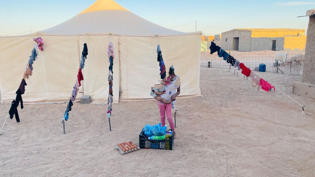 Aunque los campamentos saharauis se encuentran en pleno desierto, el clima desértico no solo se caracteriza por el calor. Durante los meses de invierno, las temperaturas bajan bruscamente por la noche y pueden llegar a niveles muy fríos. Esta diferencia extrema entre el día y la noche hace que las familias saharauis necesiten protección adicional para descansar y mantenerse seguras frente al frío.