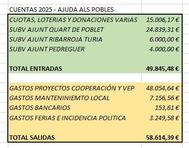 N*cuenta Iban: Es35. 3159. 0022. 1625. 6515. 1822 caixa popular Ajuda als Pobles o a través de código bizum 06742.